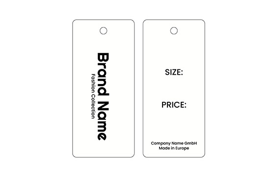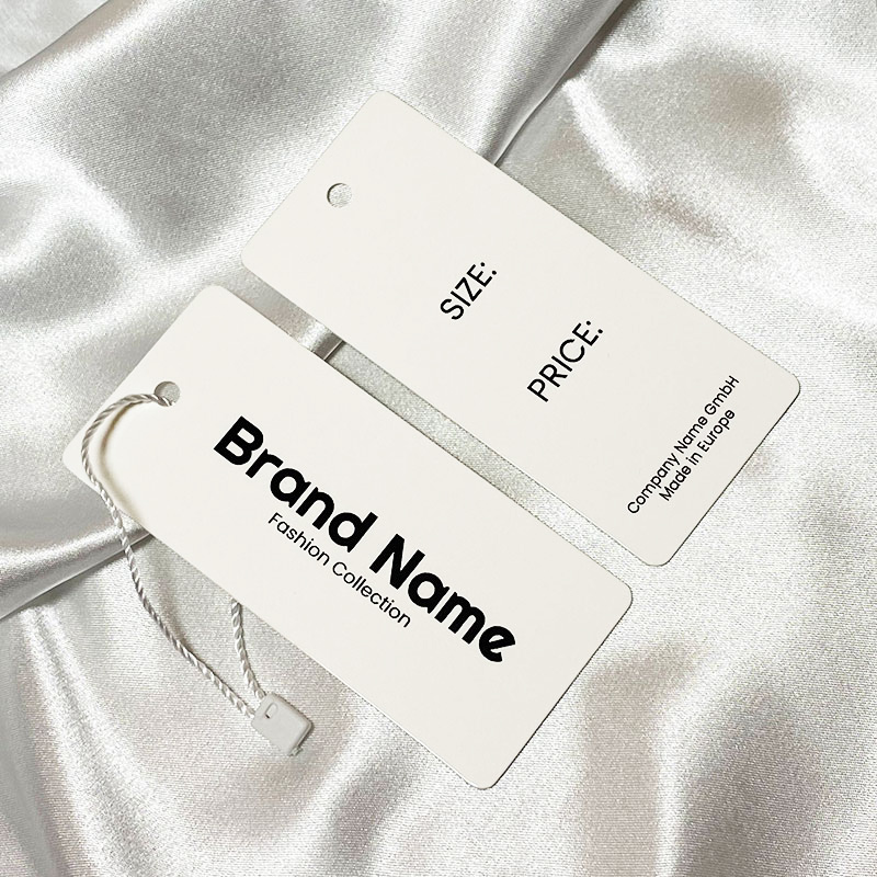 Eticheta din carton cu snur de agatat pe haine sau diverse accesorii vestimentare, personalizata cu denumirea brandului sau logo, dar si alte informatii ale produsului, cu imprimare pe ambele laturi. Acest model de eticheta este fabricat din materiale de inalta calitate, utilizand cele mai avansate tehnologii in domeniul tiparului Digital si finisare.