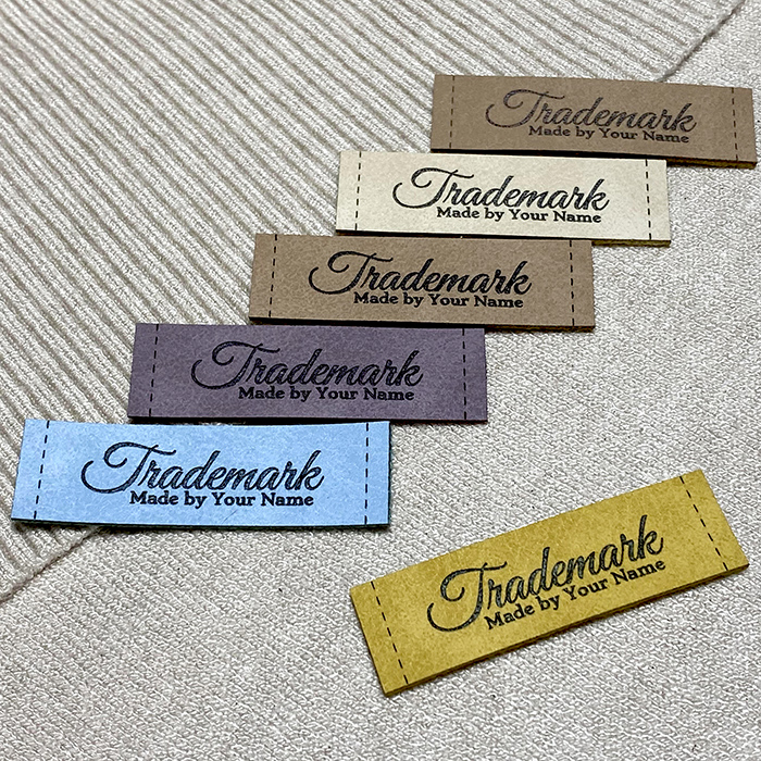Eticheta personalizata EP-M109 fabricata din piele artificiala pentru haine, genti, incaltaminte si diverse accesorii vestimentare.