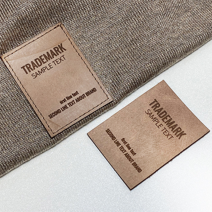 Eticheta din piele naturala personalizata cu numele producatorului model EP-M39, potrivita pentru cusut pe haine, pulovere, hanorace, genti, sepci, caciuli, manusi, fulare, etc. Acest model de eticheta din piele este fabricat din piele naturala de calitate superioara, utilizand utilaje de ultima generatie si metode profesionale de gravura laser sau embosare.