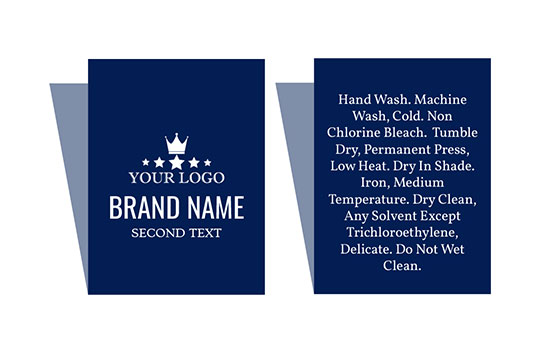 Eticheta personalizata pliata la mijloc brodata pe un suport textil model Majestic Style, personalizata cu indicator marime, numele Brandului, text de compozitie si intretinere, si un logo/emblema. Acest model de eticheta textila este fabricat din materiale de inalta calitate, utilizand cele mai avansate tehnologii in domeniul broderiei Digitale la nivel industrial.