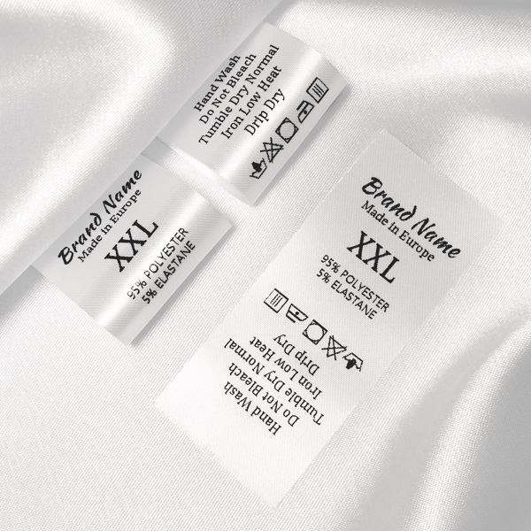 Eticheta compozitie cu marime personalizata pe un satin fin de culoare alba, potrivita pentru haine, diverse articole vestimentare si produse textile. Acest model de eticheta textila este fabricat utilizand cele mai avansate tehnologii in domeniul imprimarii digitale pe suport textil. Etichetele sunt imprimate pe satin special prin metoda transfer termic, cu o calitate impresionanta a tiparului si rezistenta ridicata la spalare. Etichetele imprimate sunt taiate automat, conform dimensiunilor prezentate.