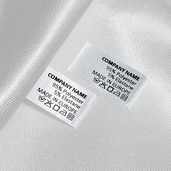 Eticheta personalizata de compozitie cu dimensiuni mici pentru cusut pe diverse articole vestimentare, fabricata la comanda din satin. Acest model de eticheta textila este fabricat utilizand cele mai avansate tehnologii in domeniul imprimarii digitale pe suport textil. Etichetele sunt imprimate pe satin special prin metoda transfer termic, cu o calitate impresionanta a tiparului si rezistenta ridicata la spalare. Etichetele imprimate sunt taiate automat, conform dimensiunilor prezentate.