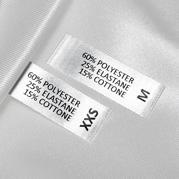 Eticheta de intretinere cu marimi fabricata la comanda din satin de calitate premium, cu datele despre compozitia materialului, pentru cusut pe haine. Acest model de eticheta textila este fabricat utilizand cele mai avansate tehnologii in domeniul imprimarii digitale pe suport textil. Etichetele sunt imprimate pe satin special prin metoda transfer termic, cu o calitate impresionanta a tiparului si rezistenta ridicata la spalare. Etichetele imprimate sunt taiate automat, conform dimensiunilor prezentate.