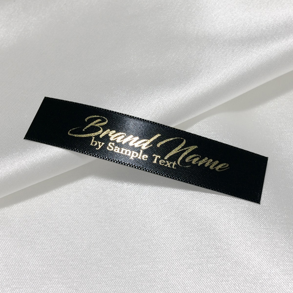 Eticheta personalizata TL-M127 imprimata pe material textil din satin potrivita pentru haine si diverse articole vestimentare.