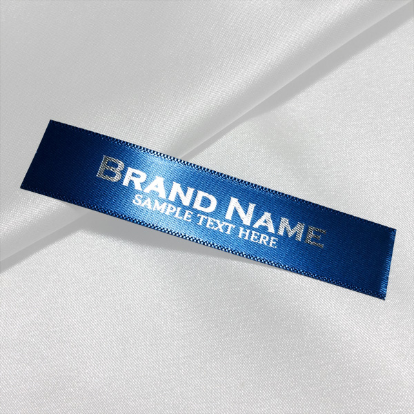 Eticheta personalizata TL-M75 imprimata pe material textil din satin potrivita pentru haine si diverse articole vestimentare.