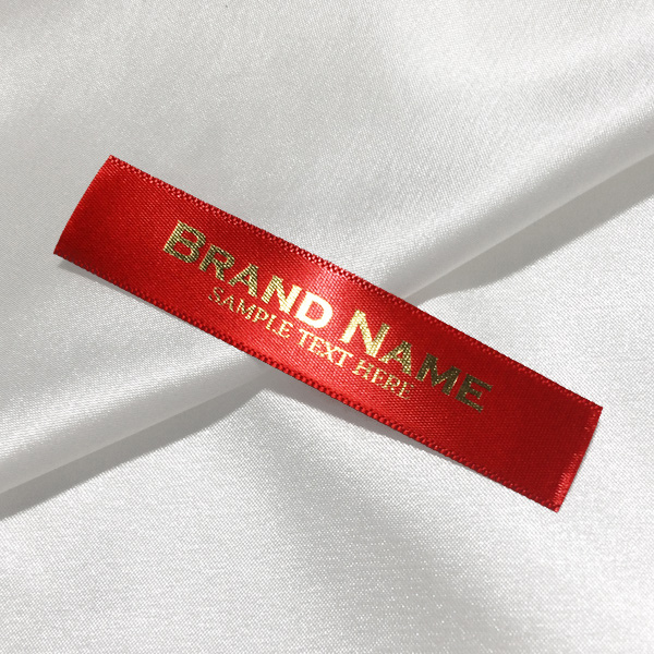 Eticheta personalizata TL-M99 imprimata pe material textil din satin potrivita pentru haine si diverse articole vestimentare.