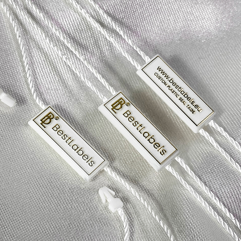 Sigiliu din plastic ST-M152 cu o forma simpla dreptunghiulara, personalizat cu un text, numele brandului, marca, website-ul, etc., si un logo/emblema, potrivit pentru orice tip de produs din domeniul industiei textile, haine, incaltaminte, genti. Acest model de sigiliu este fabricat din materiale de inalta calitate, utilizand cele mai avansate tehnologii in domeniu.